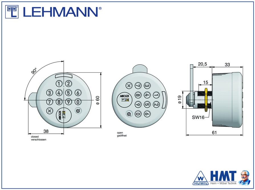 MLM Lehmann Elektronisches Drehknopfschloss HMT Giro TA